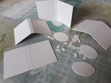 I used the last book cover I cut, to become the base. I then used the die to cut two of the photograph edges and glued to the base - these will act as a support for the walls...
